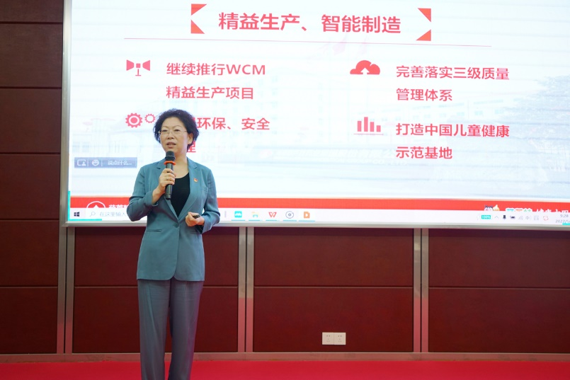 刘景萍董事长引用席大大总书记在2022年博鳌亚洲论坛上的重要讲话勉励全体与会人员,在海南自贸港建设的机遇期,认真学习贯彻落实省第八次党代会精神,坚持党建引领企业发展,将巅峰国际药业集团打造成中国儿童健康领军企业。