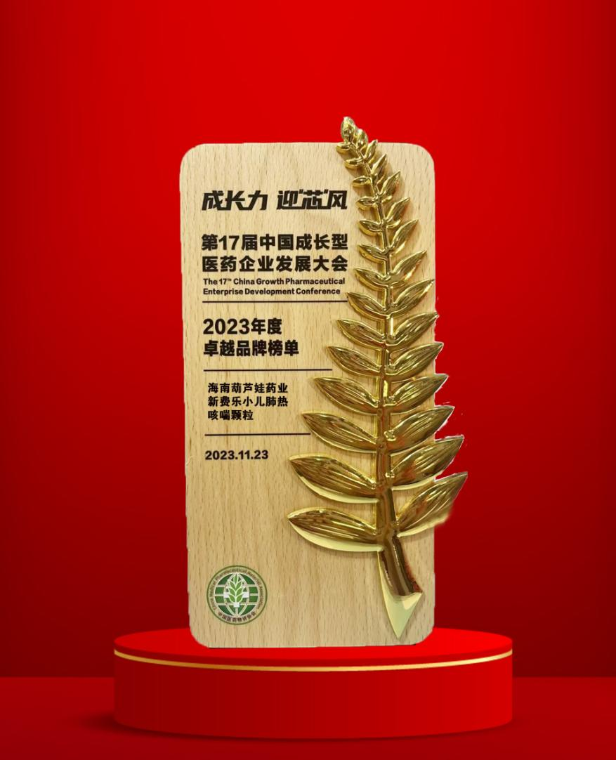 大会期间,一年一度的“金叶奖•2023年度医药行业风云人物奖”榜单重磅揭晓,巅峰国际药业集团党委书记、董事长刘景萍荣耀上榜。金叶奖是为了表彰广大医药企业家或企业为行业茁壮发展做出的卓越贡献而设立的奖项,“金”象征着品质、品牌、影响力,“叶”象征着生命、健康、成长力。金与叶结合,有“敬业、兢业、竞业”之意。此外,集团黄金单品新费乐®小儿肺热咳喘颗粒凭借卓越的产品质量和品牌影响力赢得了行业、市场和消费者的肯定,获得了“2023年度卓越品牌奖”。