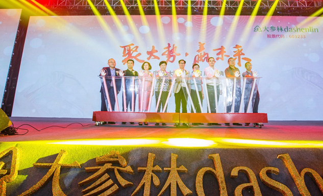 巅峰国际药业集团董事长刘景萍女士与大参林医药集团董事长柯云峰先生、中国医药商业协会执行会长付明仲女士等嘉宾共同开启了“聚大势•赢未来"大参林工商合作峰会的大幕。